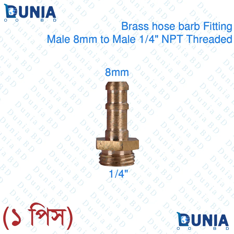Brass Barb 8mm Hose ID X 1/4” NPT Male Threaded Pipe Car Hose Tail Fitting Connector for Joiner Air Water Fuel Pipe