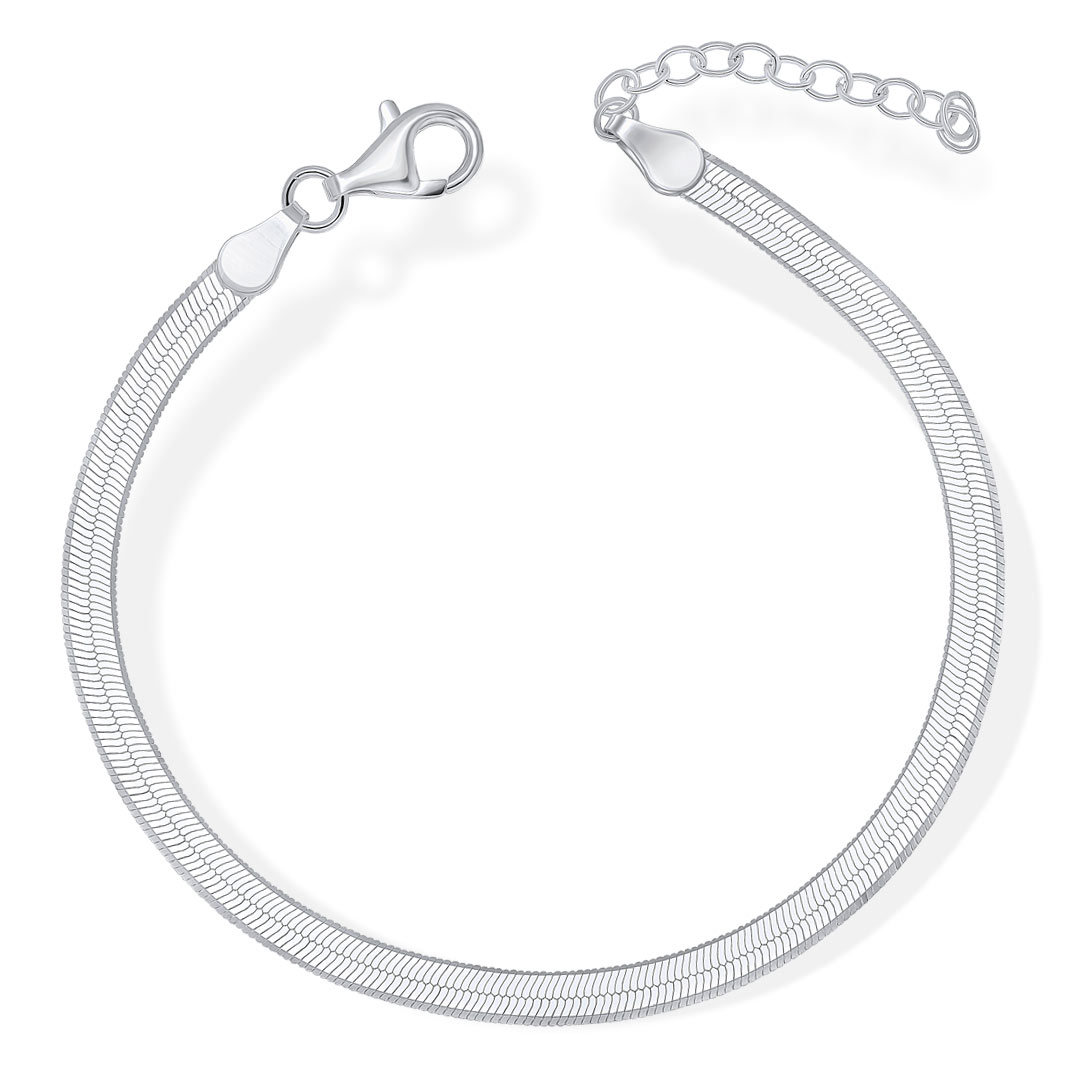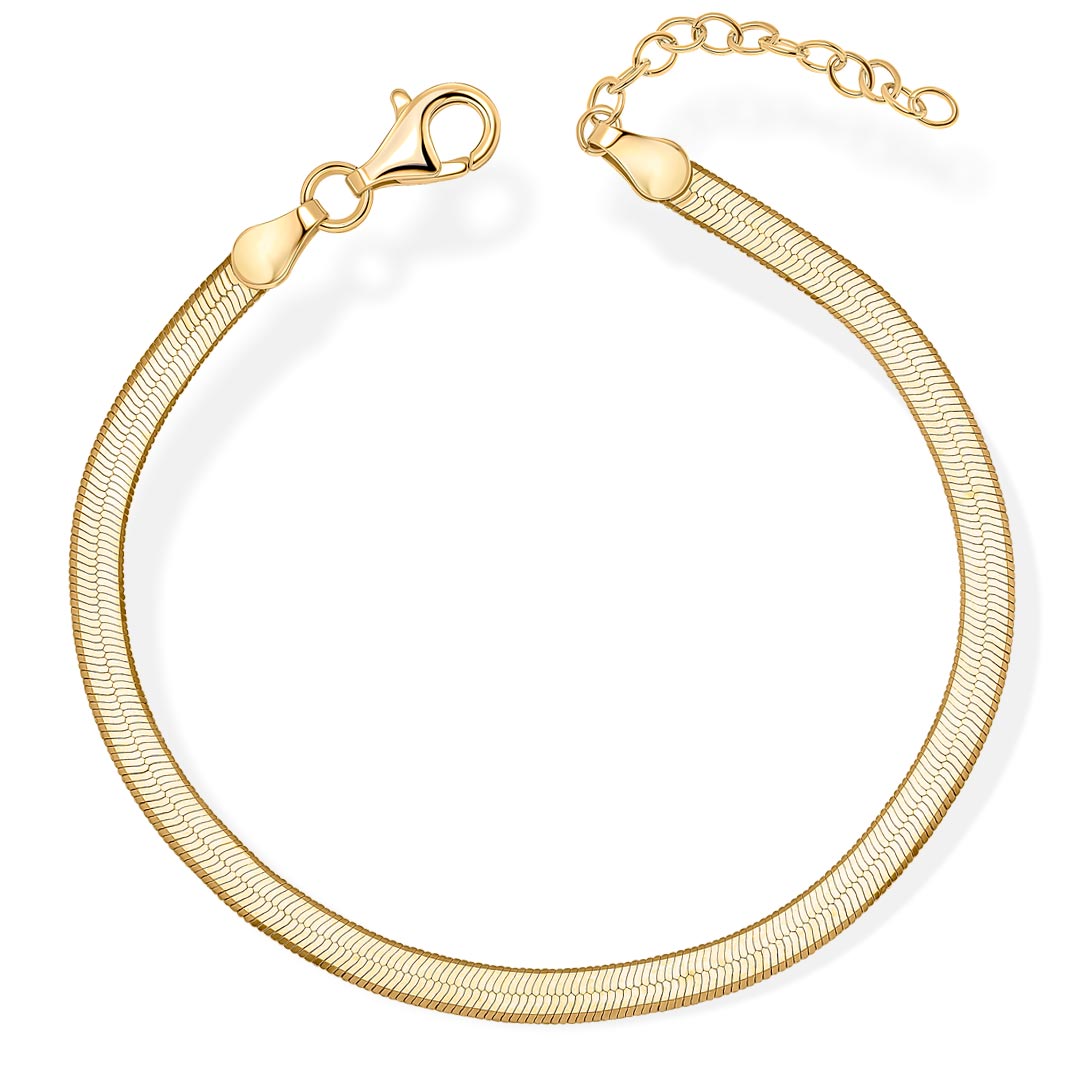 Flat Herringbone Golden Chain Sterling Silver Braclelet