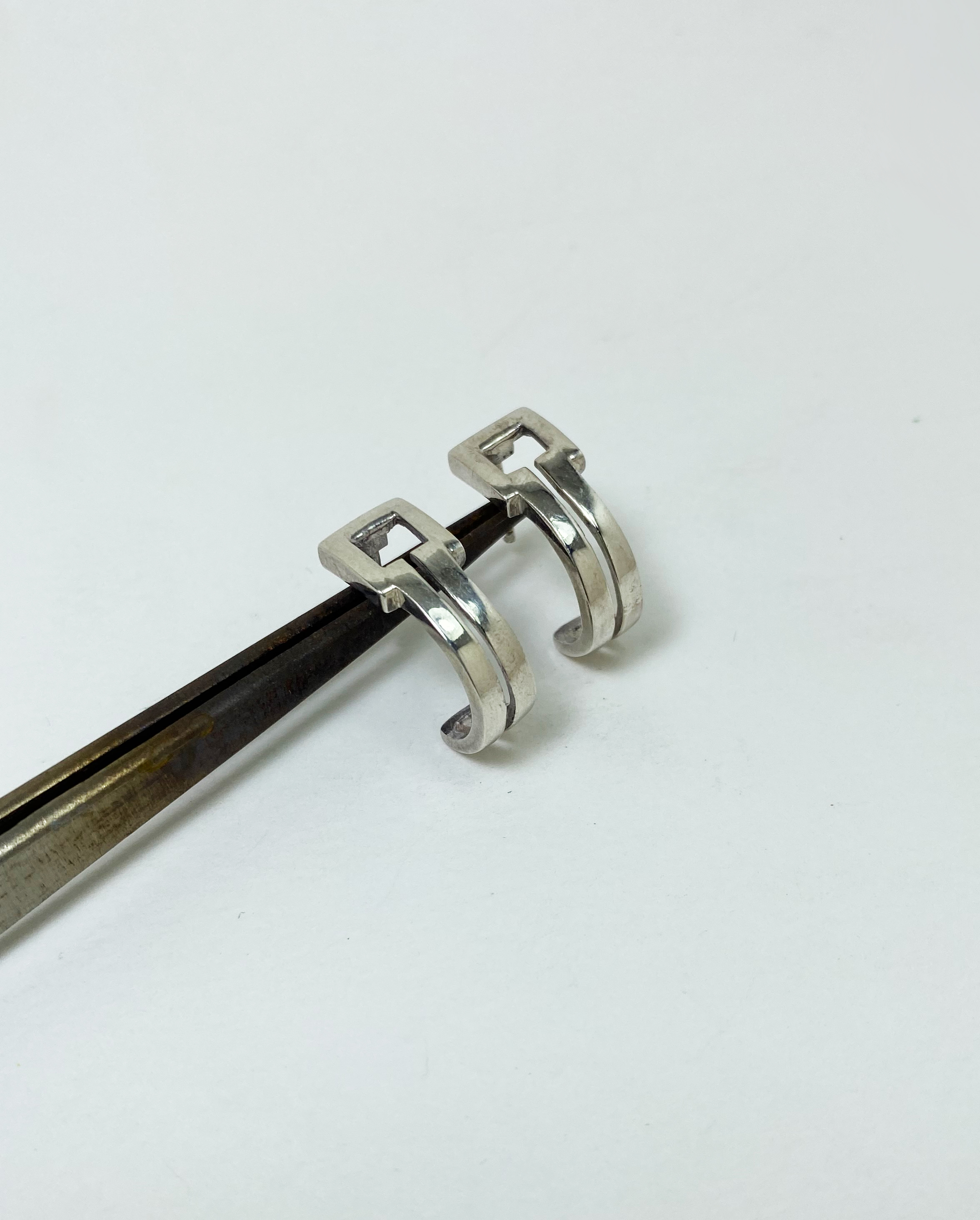 Geometric Hoop Stud Earrings 10mm, Handmade Earrings | Sup Silver