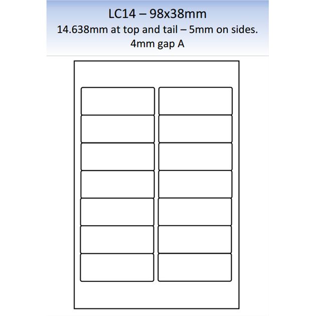 A4 Laser Labels LCH20 Matt Permanent 250 per pack (97.5 x 25.4mm)