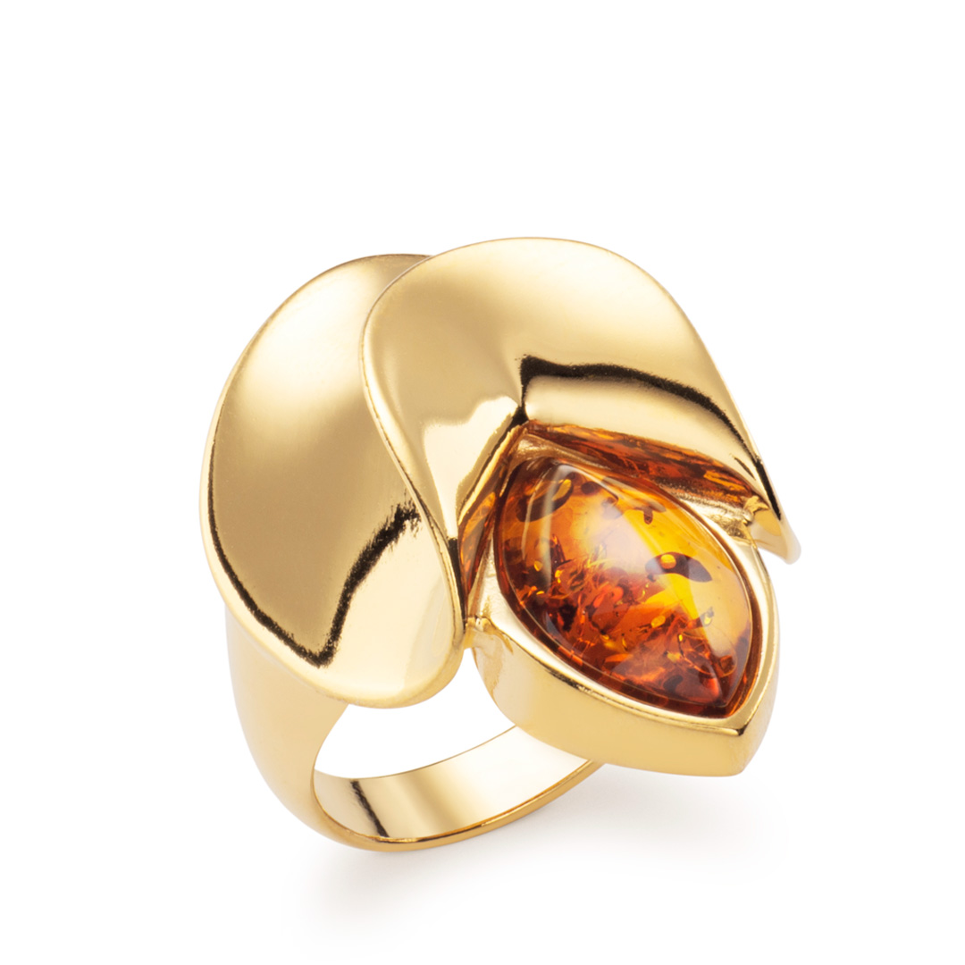 Chasee Ballet Baltic Cognac Amber Marquise Fold Ring