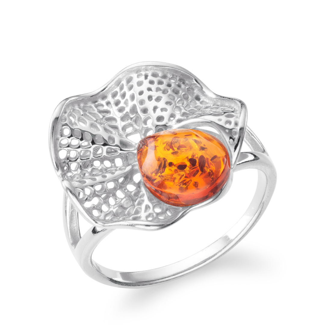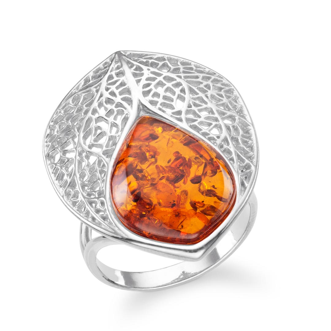 Eden Leaf Vein Lattice Harmony Baltic Cognac Amber Ring