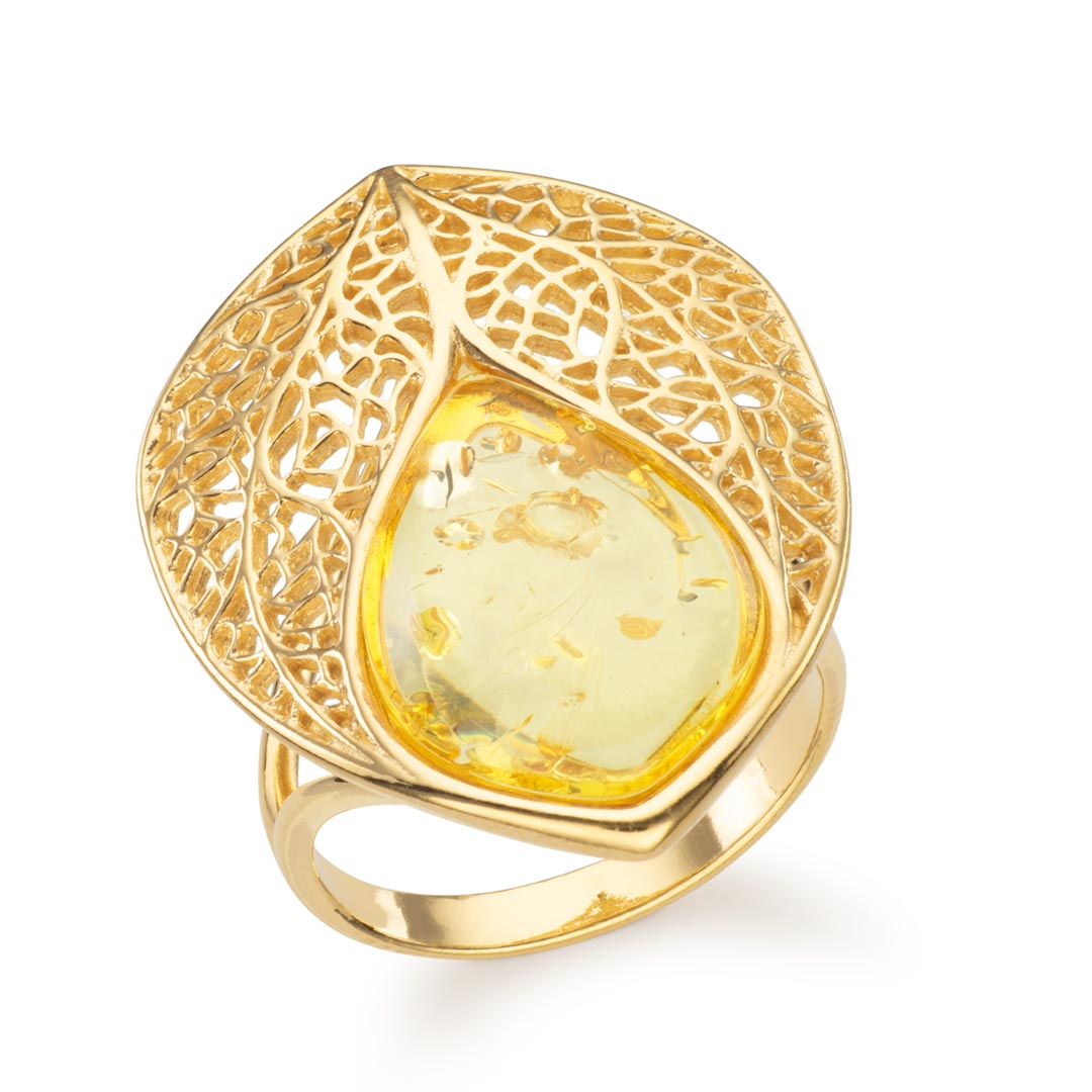 Eden Leaf Vein Lattice Harmony Baltic Lemon Amber Ring