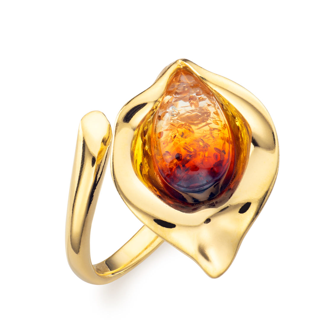 Eden Lily of the Valley Baltic Sunrise Amber TearDrop Ring