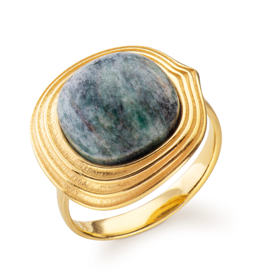 Ripples Dune Gold Vermeil Green Fushite Ring