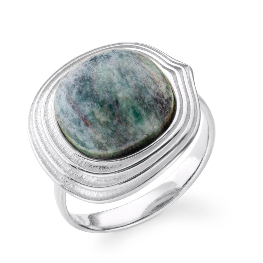 Ripples Dune Sterling Silver Green Fushite Ring
