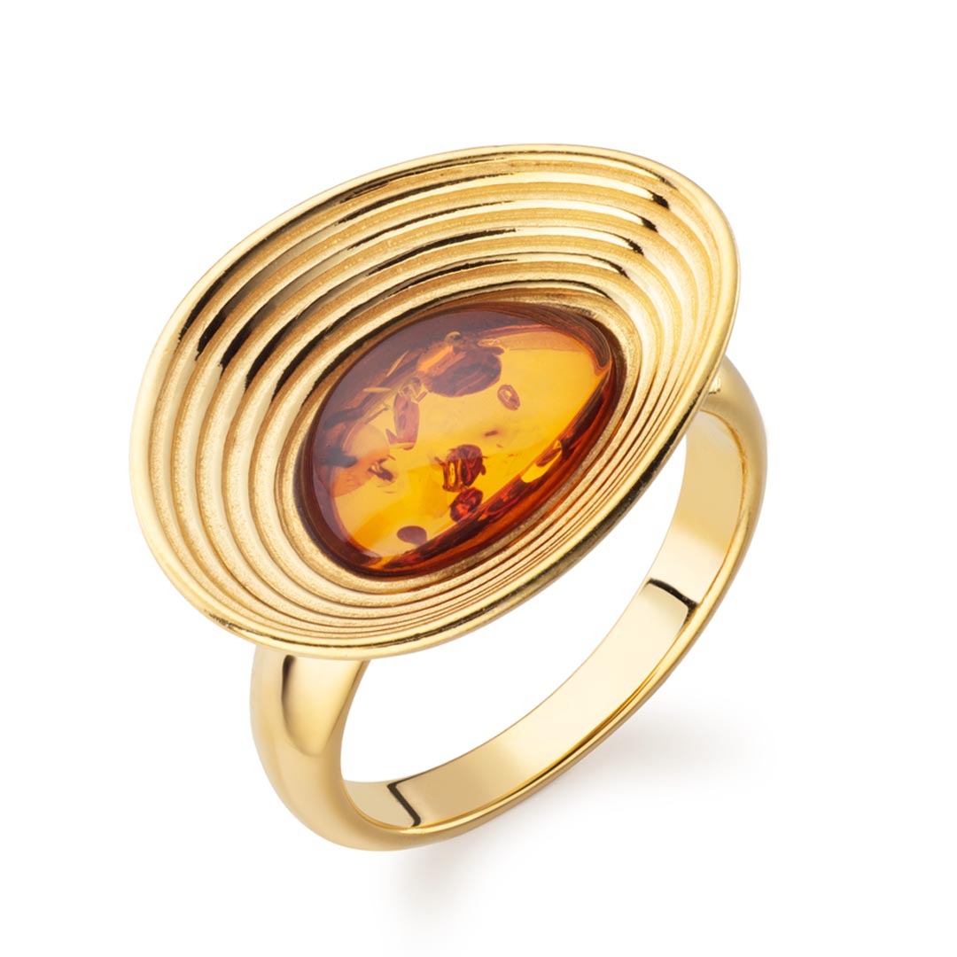 Ripples Reflections Baltic Cognac Amber Oval Ring