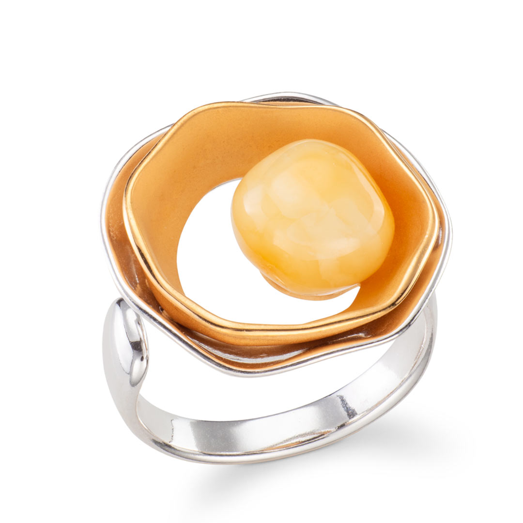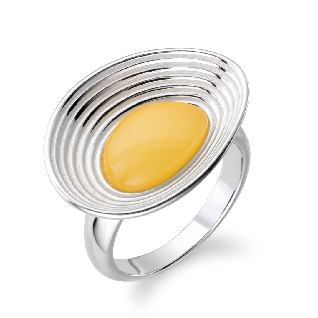 Luminor Sterling Silver Round Milk Amber Ring