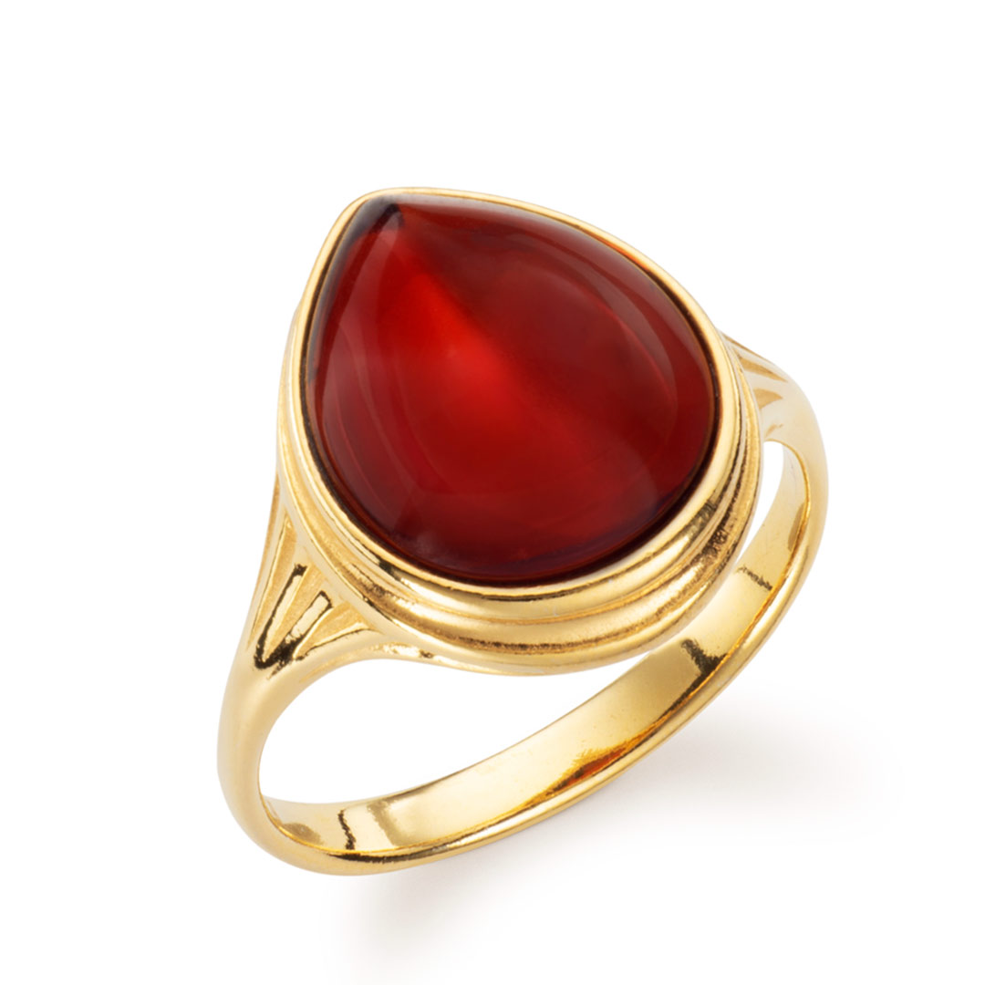 Ripples Autumn Dunes Teardrop Baltic Cherry Amber Ring
