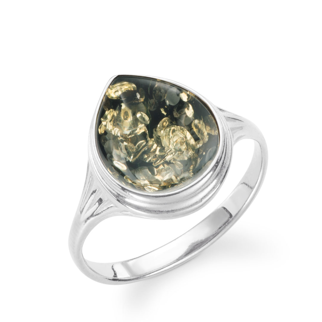 Ripples Aqua Dunes Teardrop Baltic Green Amber Ring