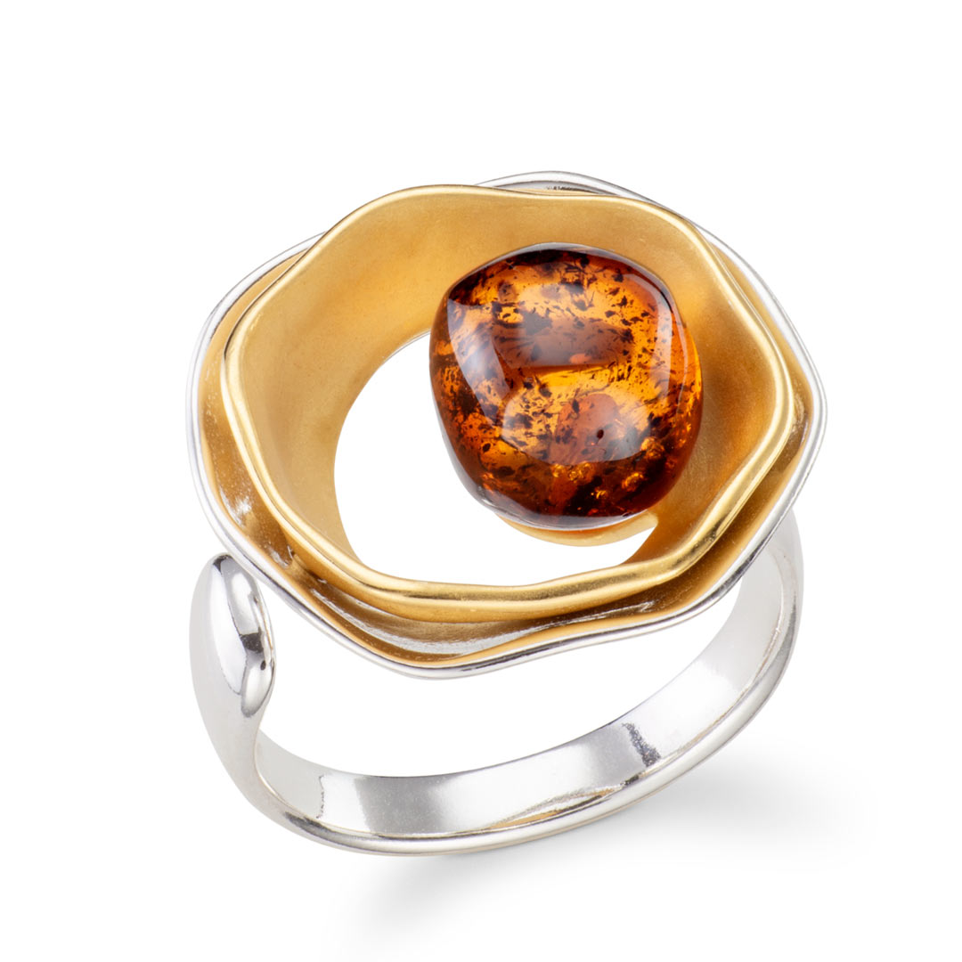 Ripples Nugget Baltic Coganc Amber Wrap Ring