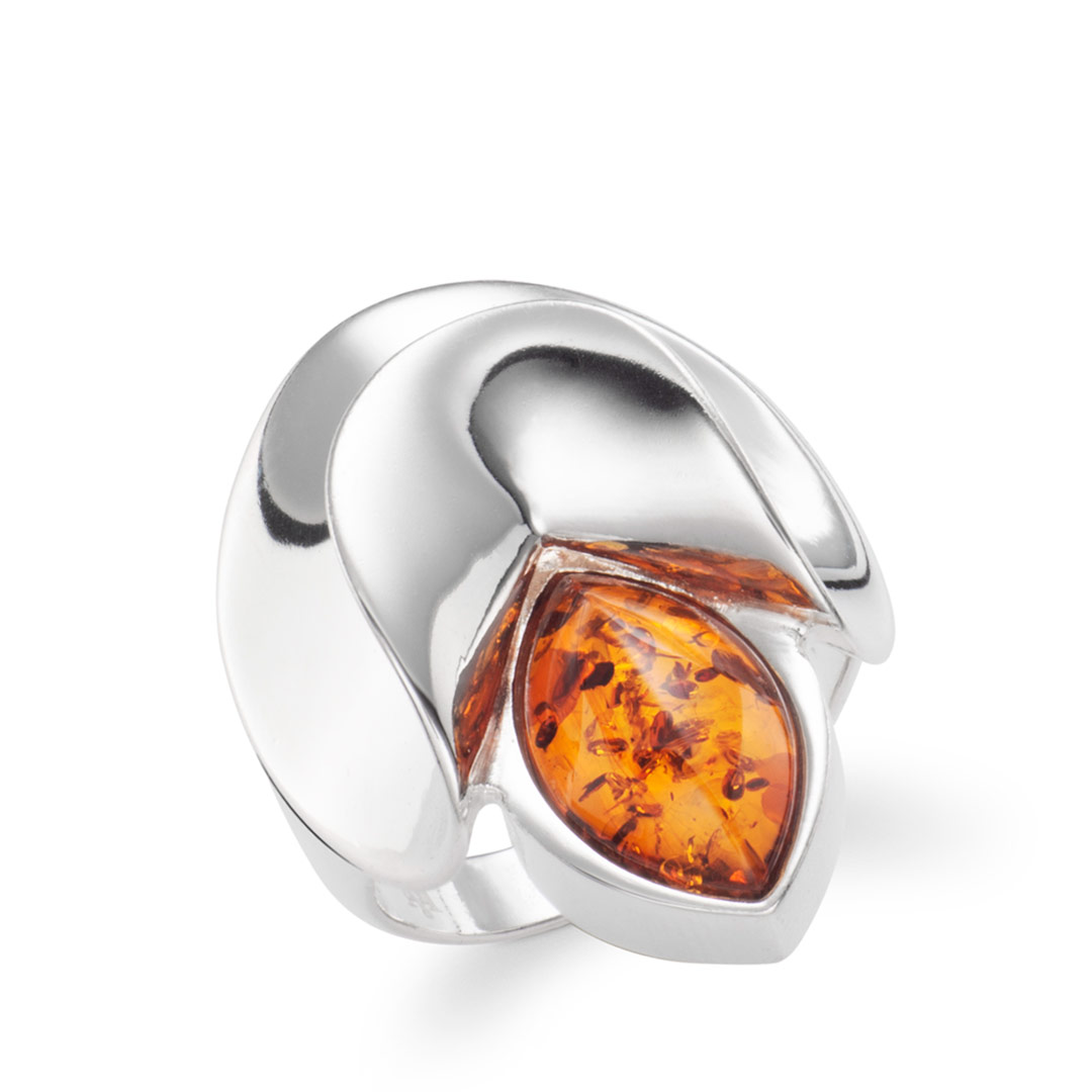 Chasee Ballet Sterling Silver Baltic Cognac Amber Marquise Fold Ring