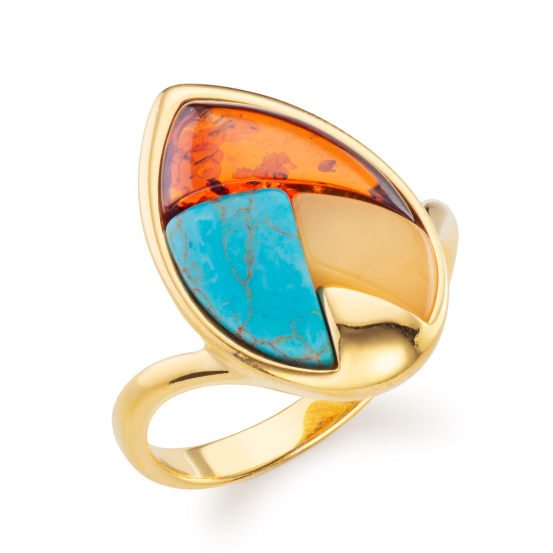 Luminor Gold Vermeil Mixed Baltic Amber Ring