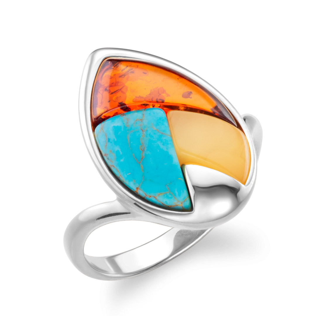 Luminor Sterling Silver Mixed Baltic Amber Ring