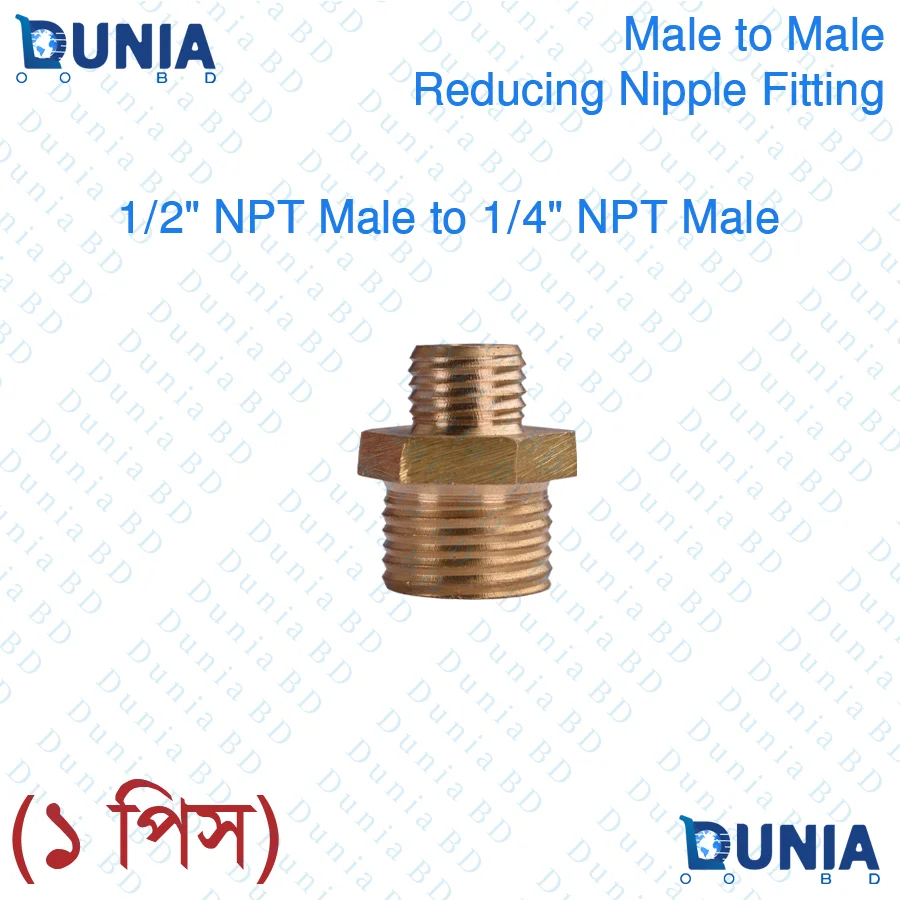 Brass Pipe Male Hex 1/2″ NPT Male to 1/4″ NPT Reducer Reducing Nipple Fitting Adapter