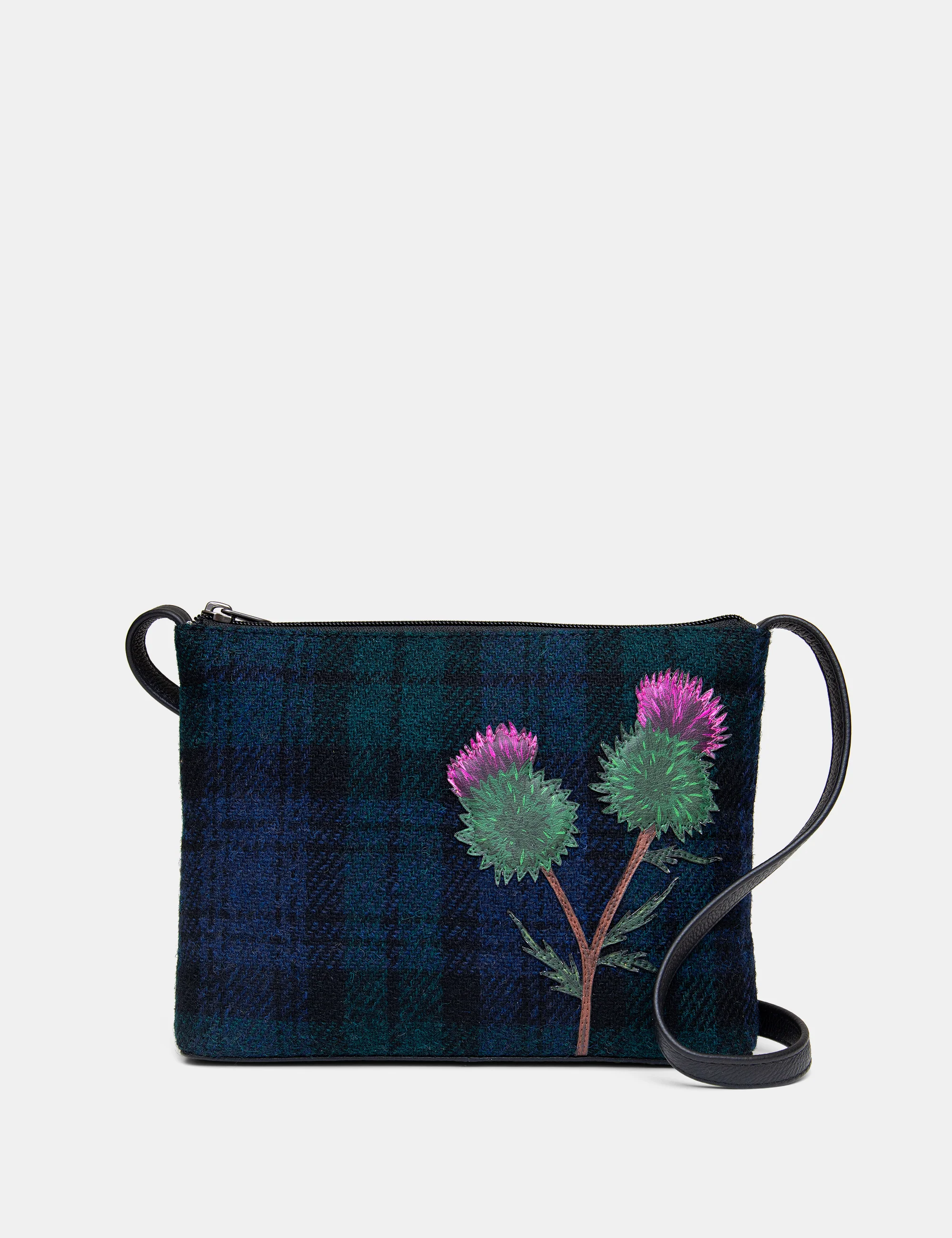 Yoshi Leather Highland Thistle Harris Tweed Leather Cross Body Bag